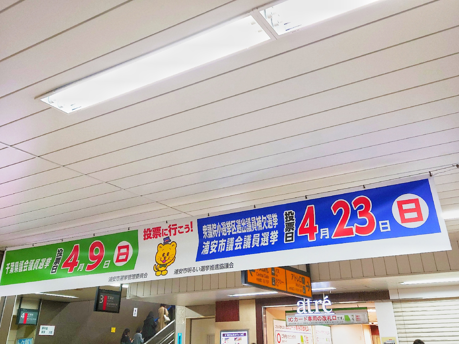 4月9日(日)は「千葉県議会議員選挙」の投票日、4月23日(日)は「衆議院小選挙区選出議員補欠選挙」及び「浦安市議会議員選挙」の投票日。選挙に行こう!